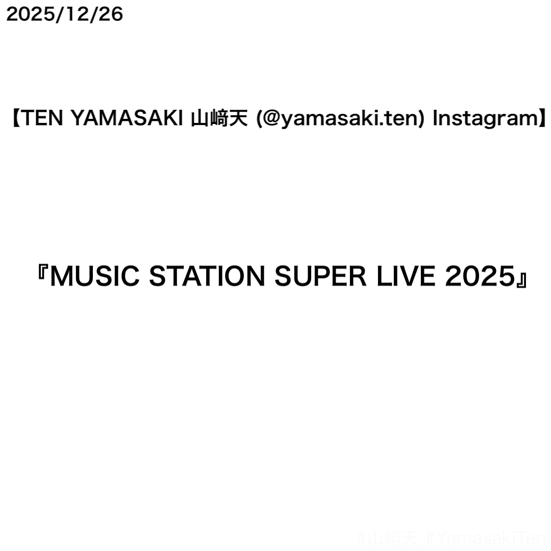 【山﨑天さんInstagram】ハッシュカット × ブラック衣装 12/26『MUSIC STATION SUPER LIVE 2025』