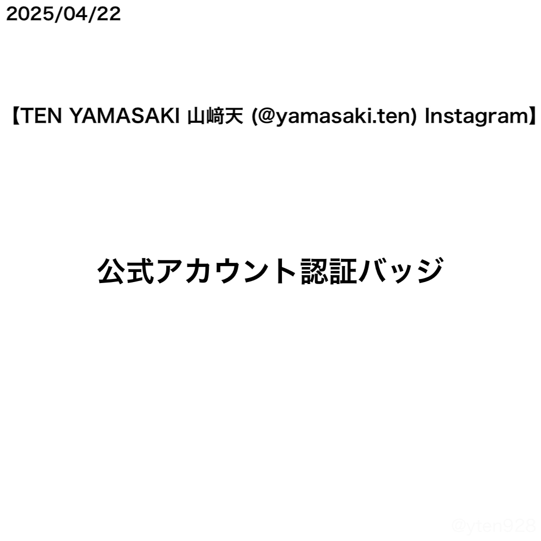 山﨑天さんの公式Instagramアカウント(@yamasaki.ten)に公式アカウントであることを示す認証バッジが付いたことが、4月22日に確認された。アカウント名の横に青色のチェックマークが付いた。