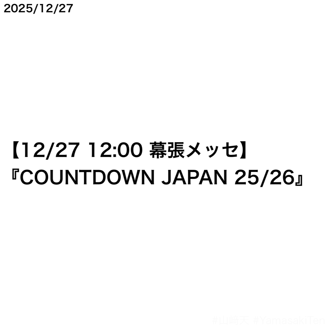 エース・山﨑天さん 12/27『COUNTDOWN JAPAN 25/26』出演決定 5年連続6回目