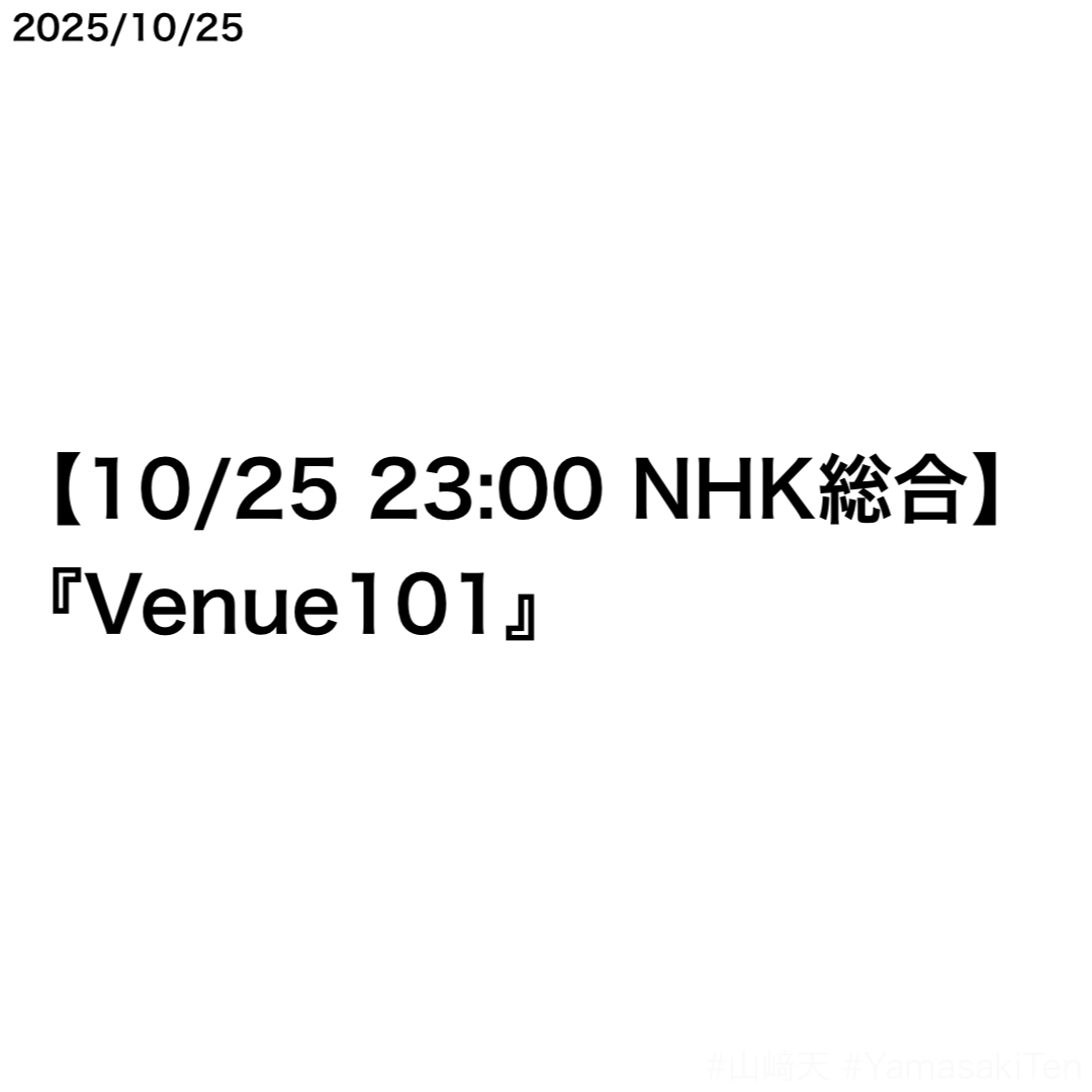10月25日 23:00から放送の『Venue101』(NHK総合)に、山﨑天さんが出演することが決定した。山﨑天さんが同番組に出演するのは、今回で12回目。櫻坂46の「Unhappy birthday構文」を披露する。