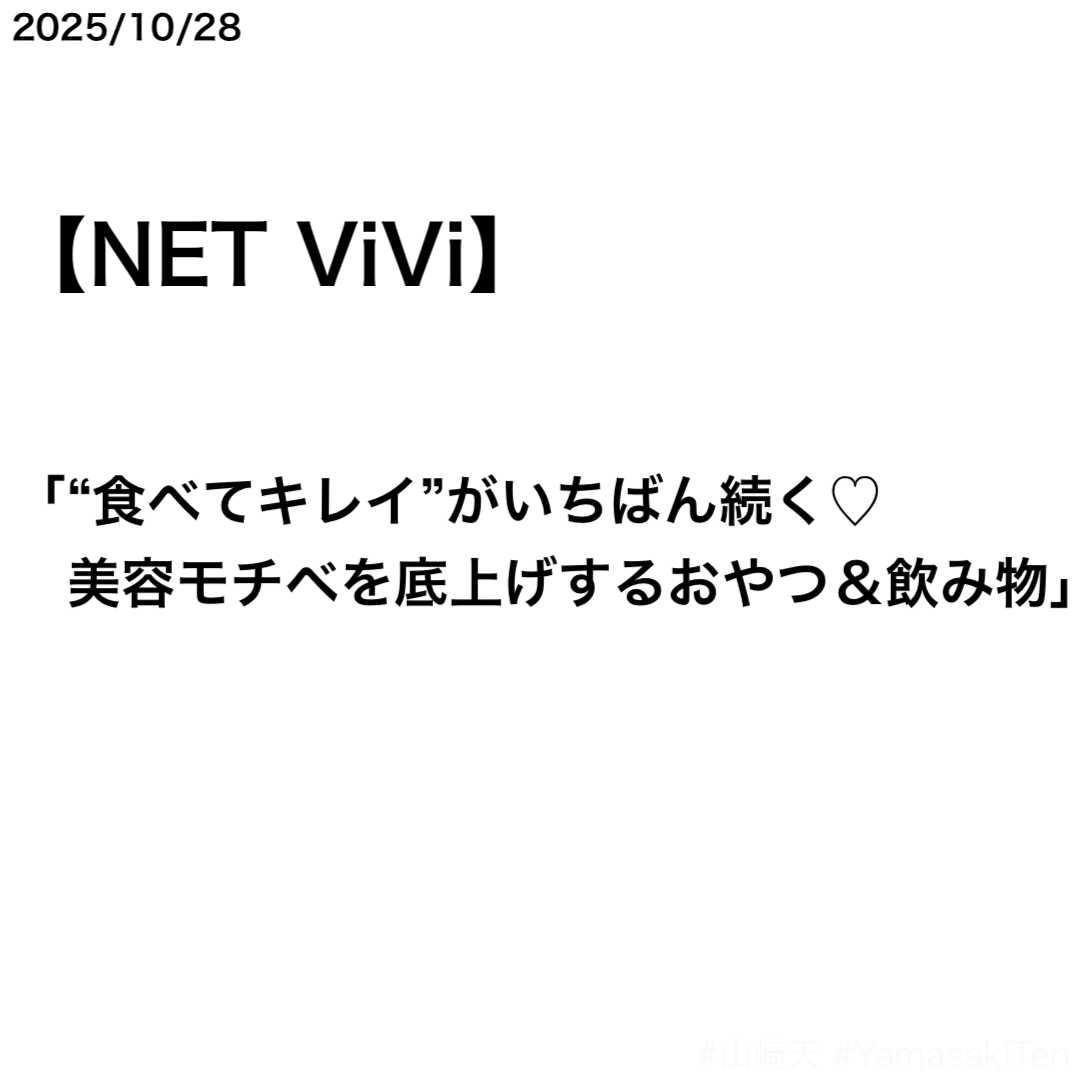 NET ViViで山﨑天さんがヘルシーなお菓子を紹介する記事が公開された。記事の内容は、『ViVi 2025年11月号』に掲載されている「ととのう自炊」のもの。