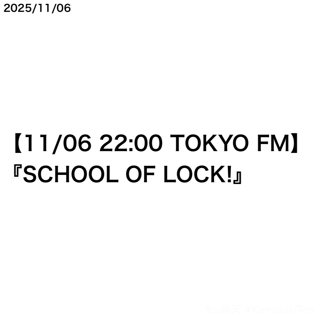 11月6日放送の『SCHOOL OF LOCK!』(TOKYO FM)に、山﨑天さんがサプライズ電話出演した。番組を「ホーム」と表現した。radikoで配信中。