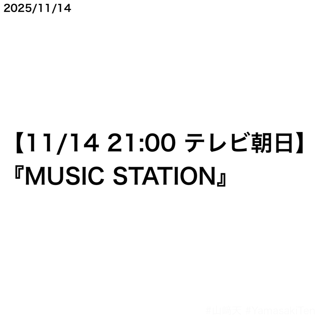 11月14日 21:00から放送の『MUSIC STATION』(テレビ朝日)に、山﨑天さんが出演することが決定した。山﨑天さんが同番組に出演するのは、今回で18回目。櫻坂46の「Unhappy birthday構文」を披露する。
