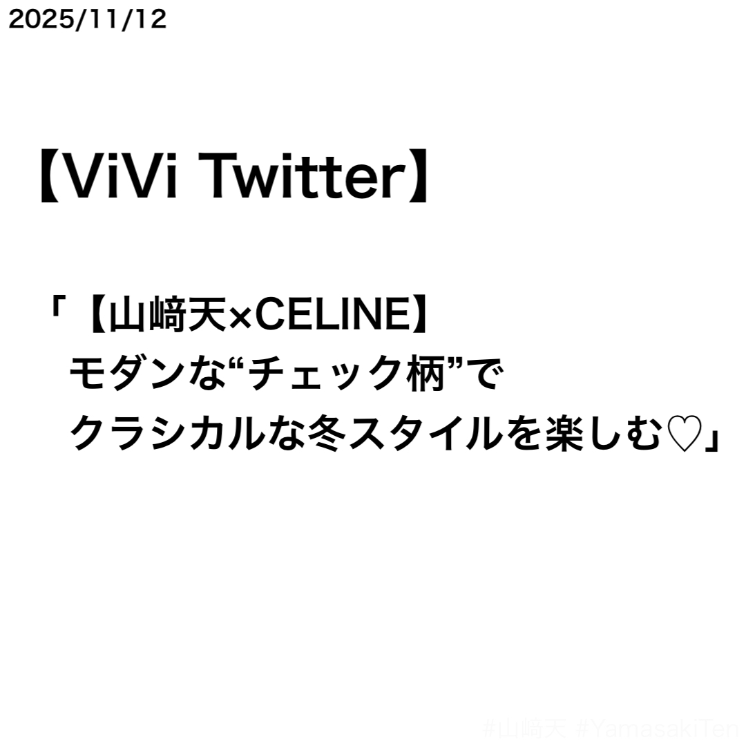#山﨑天 #CELINE pic.twitter.com/hWLeHdoYqo— ViVi (@vivi_magazine) November 12, 2025