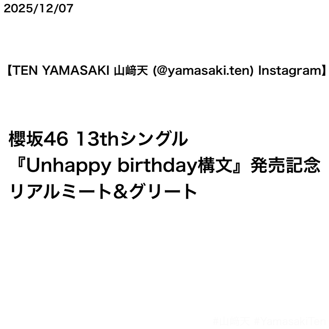 山﨑天さんが12月7日、カメラ「KODAK PIXPRO WPZ2」の写真をInstagram(@yamasaki.ten)に投稿した。同日に開催されたオンラインミート&グリートの際に撮影したものとみられる。