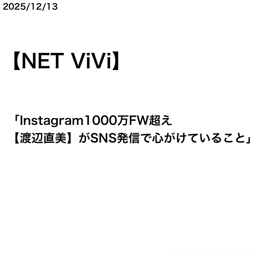 NET ViViで山﨑天さんと渡辺直美さんのニューヨーク表紙第3弾記事が公開された。記事の内容は、表紙を務めた『ViVi 2026年1月号』のカバーストーリー「山﨑天 meets 渡辺直美 in NY」のもの。