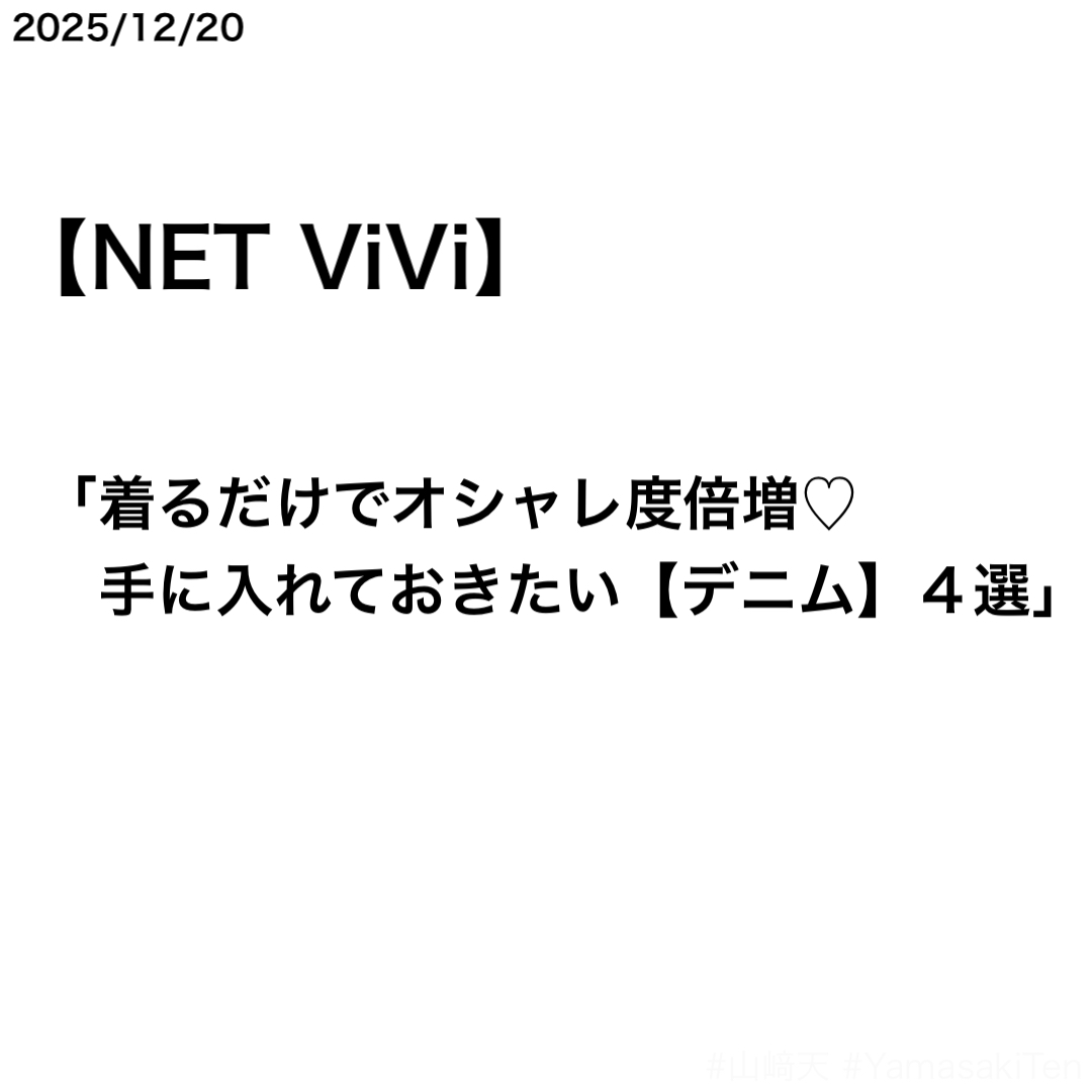 NET ViViで山﨑天さんのニューヨークデニムコーデ記事が公開された。記事の内容は、表紙を務めた『ViVi 2026年1月号』に掲載されている「天とデニムとニューヨークと。」のもの。