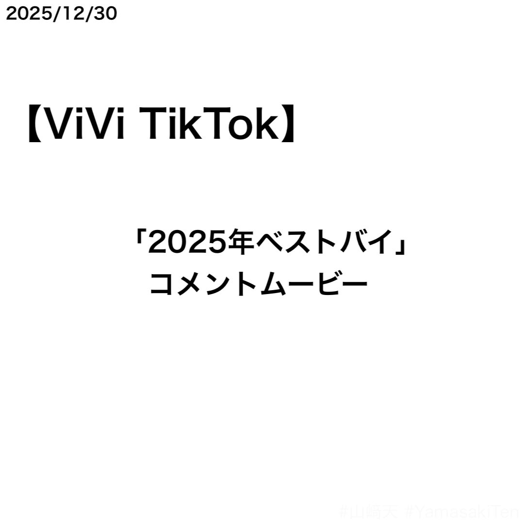 ViVi TikTokで山﨑天さんの2025年ベストバイコメントムービーが公開された。『チェンソーマン』の漫画やグッズを挙げた。