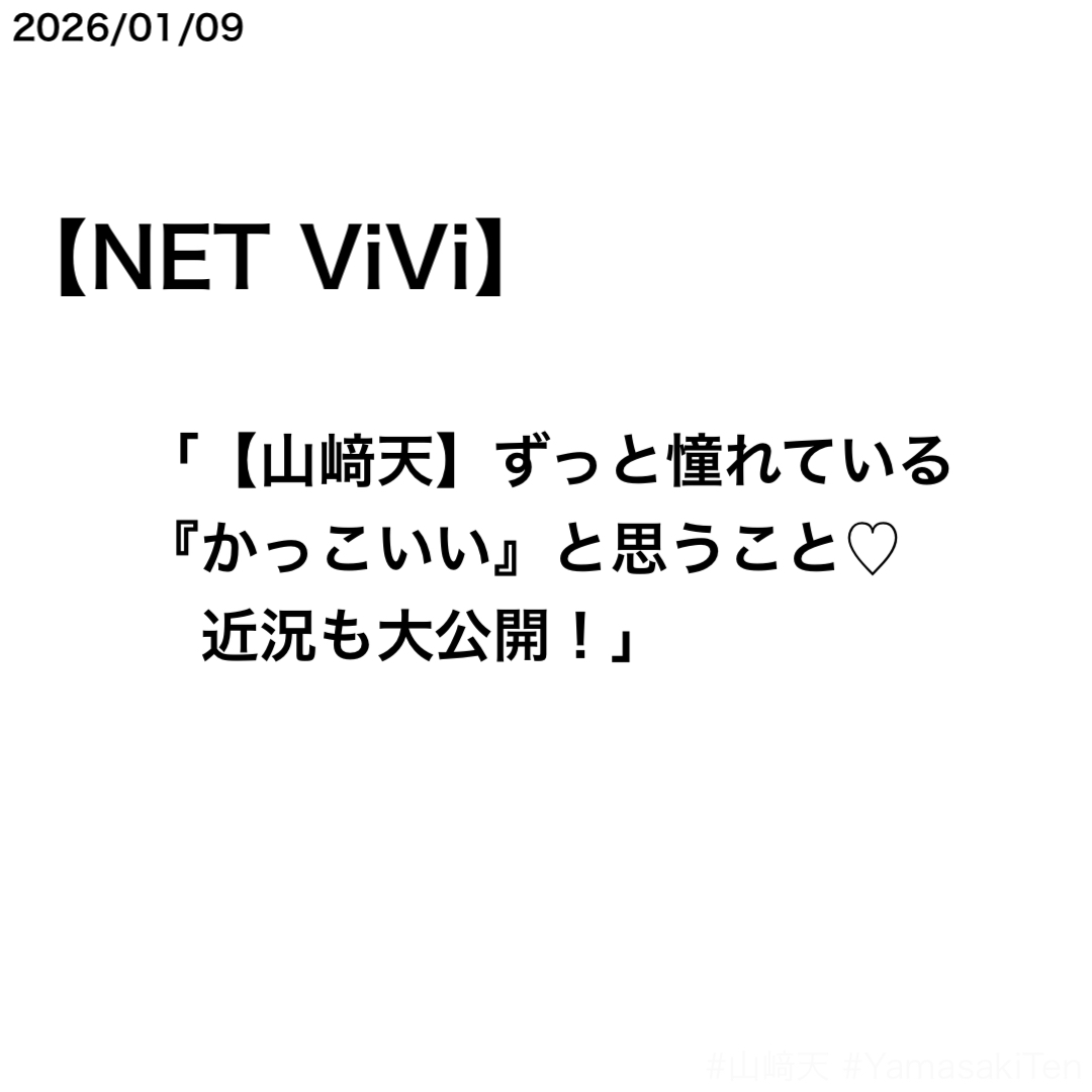 NET ViViで山﨑天さんのソロ連載「テンコア」の記事が公開された。記事の内容は、『ViVi 2026年2・3月合併号』に掲載されている「テンコア vol.26 “ウィンタースポーツがしたーい!”」のもの。
