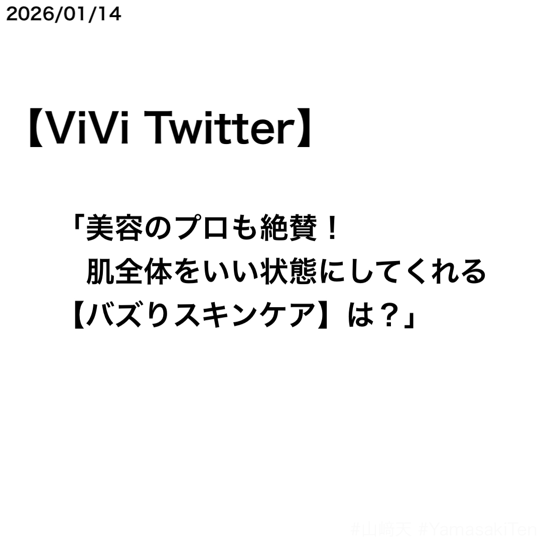 ViVi Twitterで山﨑天さんのスキンケアトレンドキーワード記事がシェアされた。記事の内容は、『ViVi 2026年2・3月合併号』に掲載されている「おしゃれ女子がスキンケアを科学したならば」のもの。