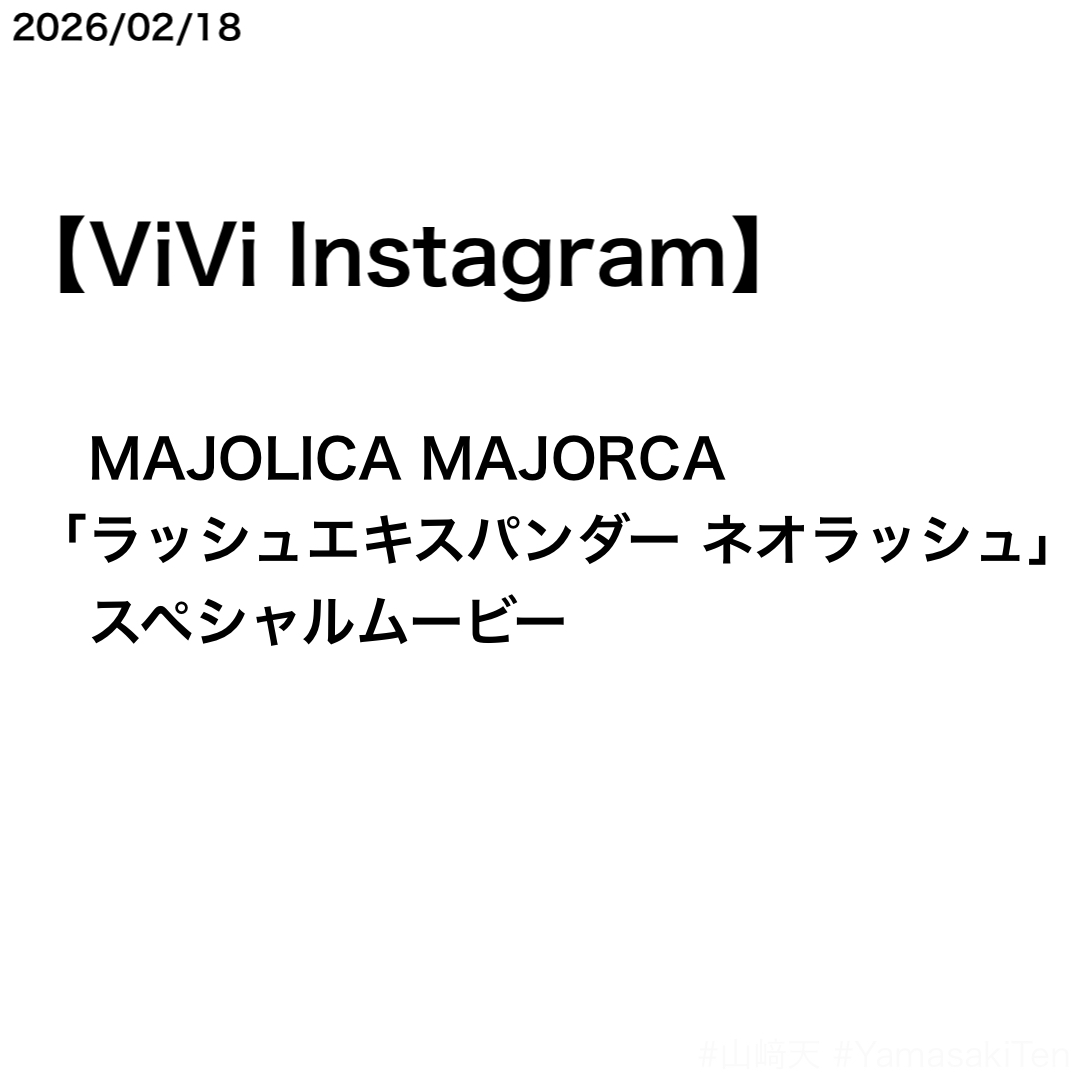 ViVi Instagramで、山﨑天さん主演のMAJOLICA MAJORCA「ラッシュエキスパンダー ネオラッシュ」のスペシャルCMが公開された。