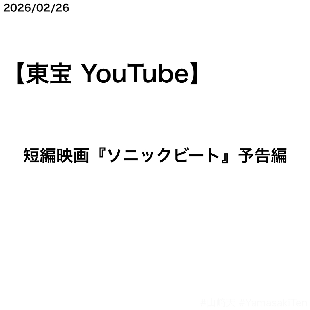 3月6日に公開される山﨑天さん出演の短編映画『ソニックビート』(東宝)の予告編とキービジュアルが公開された。山﨑天さんは「陸上部イチ足が速い」というアキ先輩を演じる。