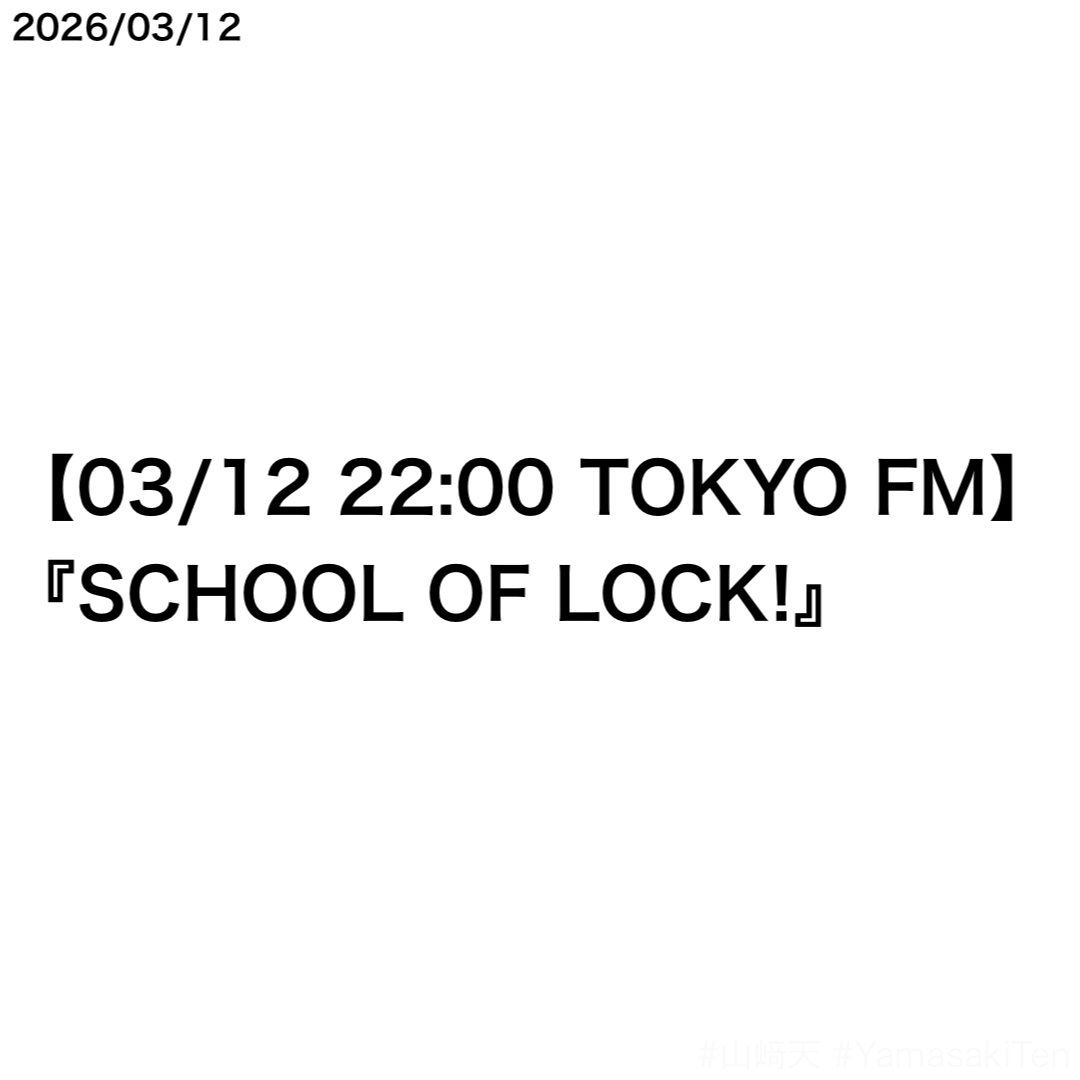 山﨑天さん 03/12『SCHOOL OF LOCK!』出演決定 4か月ぶり5回目