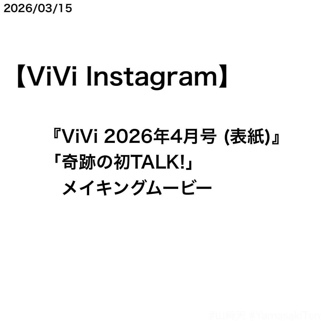 ViVi Instagramで山﨑天さん、せいらさん、鎮西寿々歌さんのメイキングが公開された。表紙を務めた『ViVi 2026年4月号』のカバーストーリー「奇跡の初TALK!」のもの。