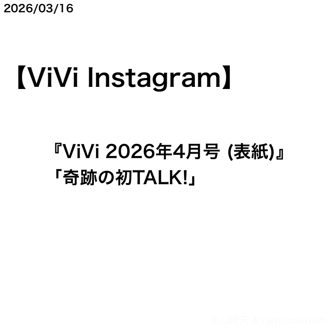 ViVi Instagramで山﨑天さん、せいらさん、鎮西寿々歌さんの対談まとめが公開された。表紙を務めた『ViVi 2026年4月号』のカバーストーリー「奇跡の初TALK!」のもの。