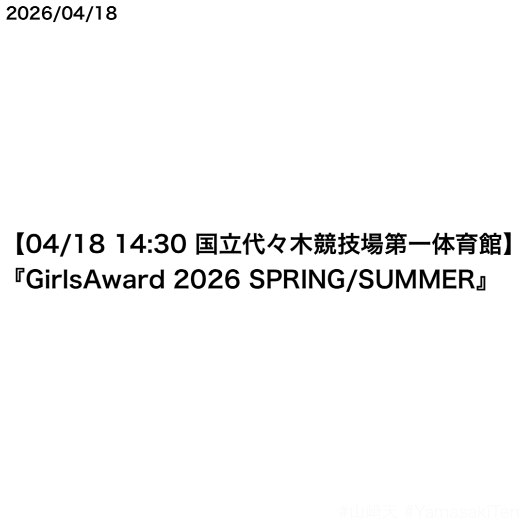 4月18日 14:30から国立代々木競技場第一体育館で開催される『Rakuten GirlsAward 2026 SPRING/SUMMER』に、山﨑天さんがモデル出演することが決定した。山﨑天さんがGirlsAwardにモデルとして出演するのは今回で7回目。GirlsAwardに出演するのは8回目となる。