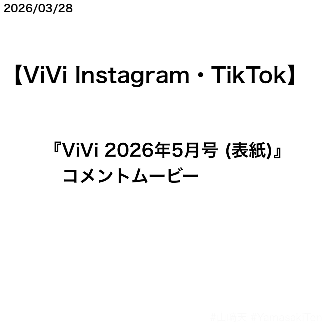 ViVi Instagram・TikTokで山﨑天さんのコメントムービーが公開された。ムービーの内容は、表紙を務めた『ViVi 2026年5月号』のカバーストーリーのもの。