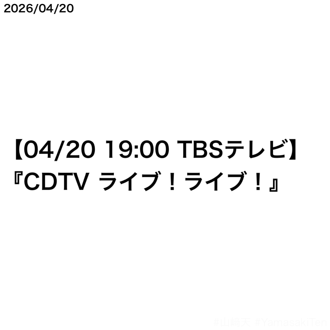 エース・山﨑天さん 04/20『CDTV ライブ!ライブ!』出演決定 1か月ぶり29回目