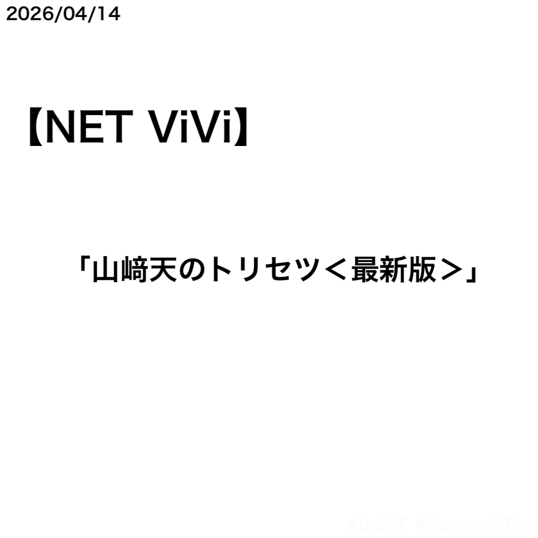 NET ViViで山﨑天さんのインタビュー記事が公開された。記事の内容は、表紙を務めた『ViVi 2026年5月号』のカバーストーリーのもの。
