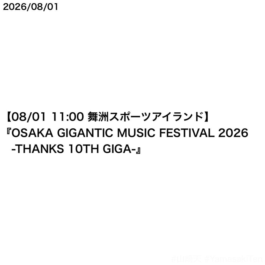 エース・山﨑天さん 08/01『OSAKA GIGANTIC MUSIC FESTIVAL 2026』出演決定 2年ぶり3回目