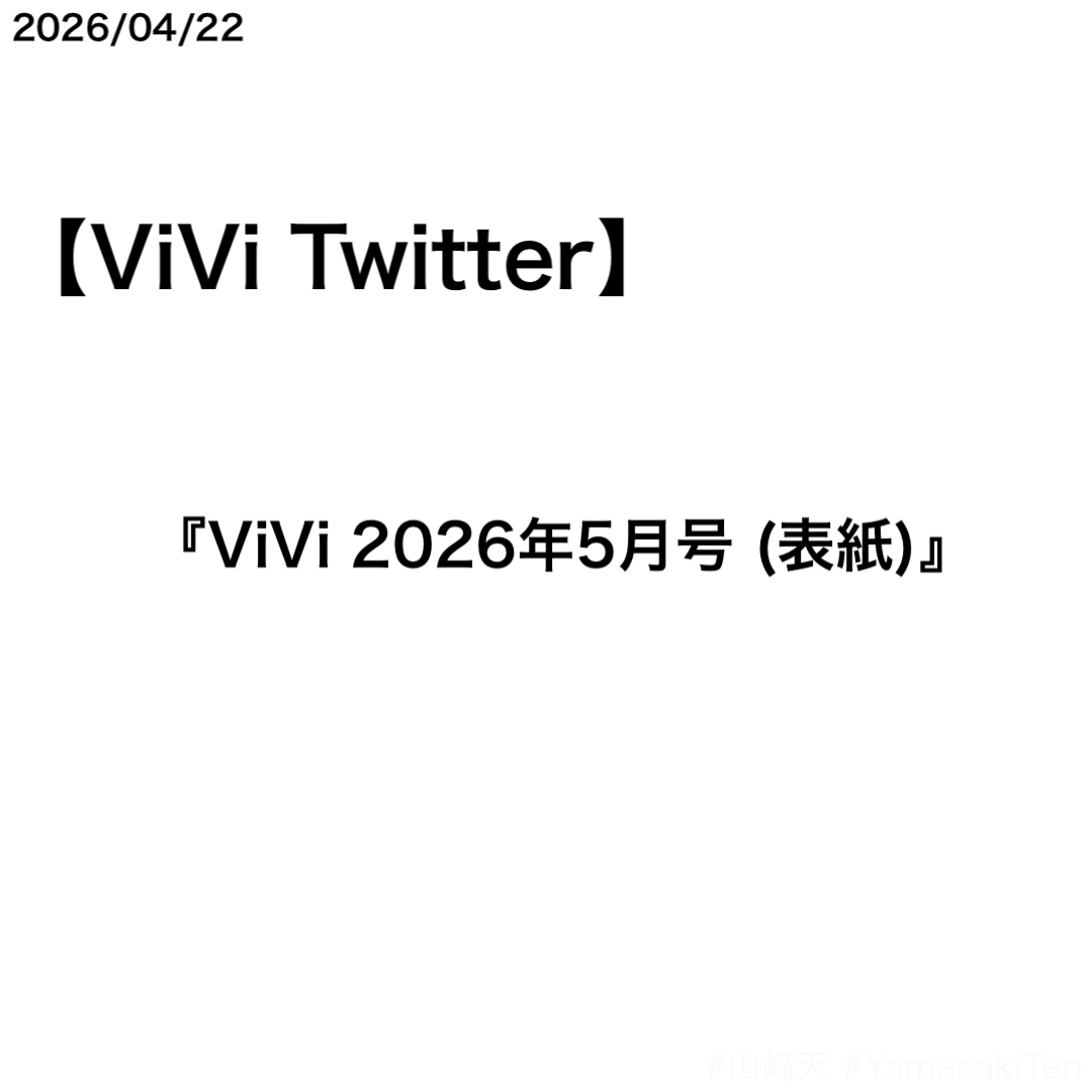 ViVi Twitterで山﨑天さんの限定特典フォトカードとオフショットが公開された。表紙を務めた『ViVi 2026年5月号』のカバーストーリーのもの。