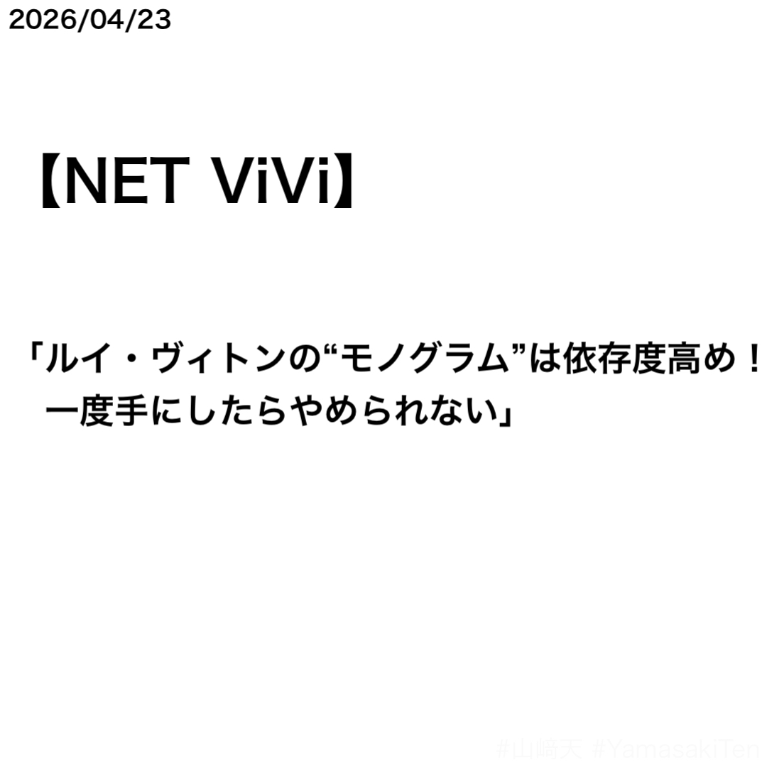 NET ViViで山﨑天さんのLOUIS VUITTONのPR記事が公開された。記事の内容は、『ViVi 2026年6月号』に掲載されている「ルイ・ヴィトンの“モノグラム” 可愛いものぜーんぶ♡」のもの。