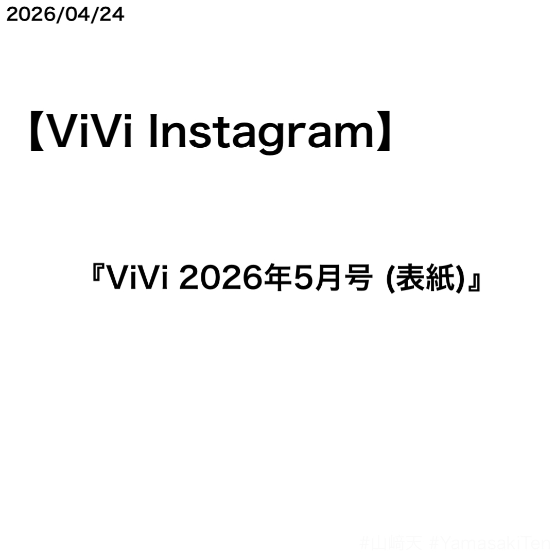 ViVi Instagramで山﨑天さんが表紙を務めた『ViVi 2026年5月号』のカバーストーリーのまとめが公開された。
